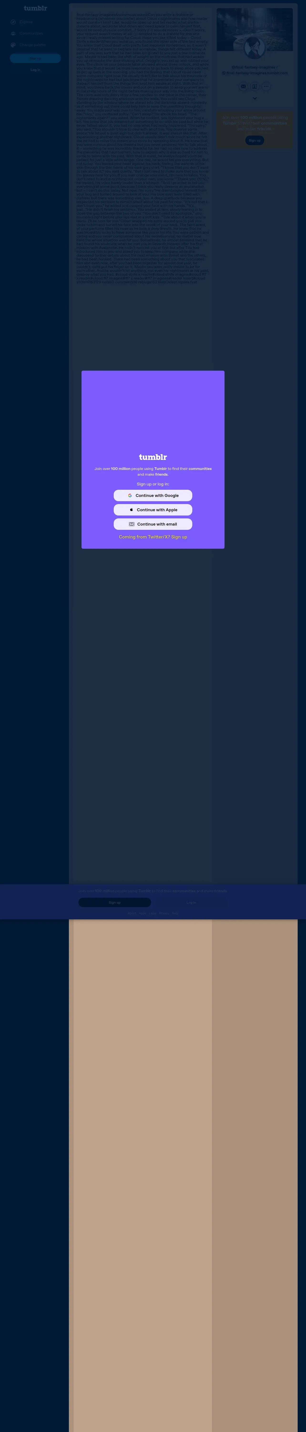https://www.tumblr.com:443/final-fantasy-imagines/632858383666577408/can-you-write-a-drabble-or-headcanons-whatever