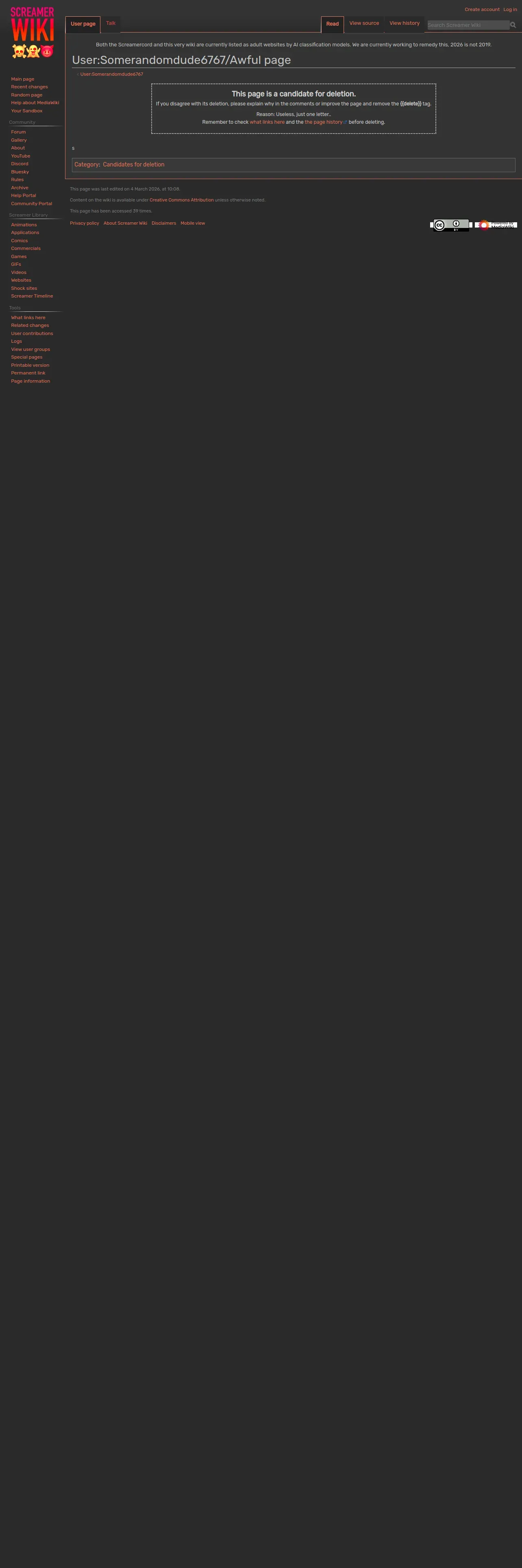 https://screamer.wiki:443/User:Somerandomdude6767/Awful_page