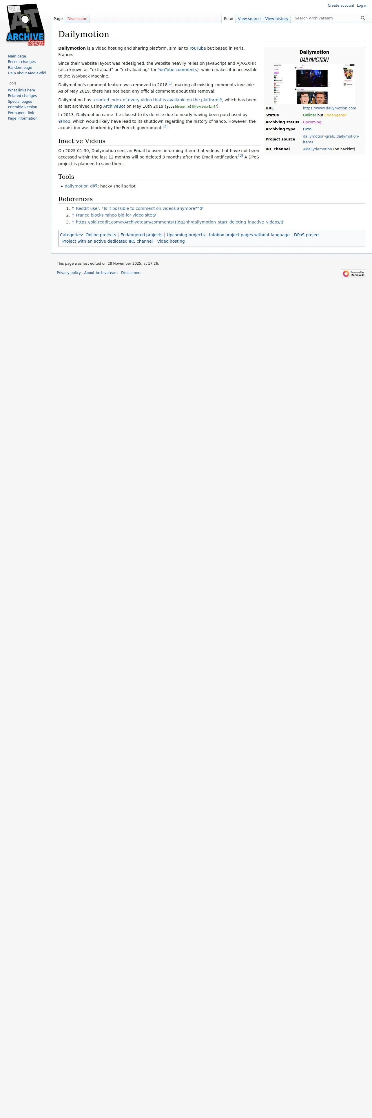 https://wiki.archiveteam.org:443/index.php/Dailymotion