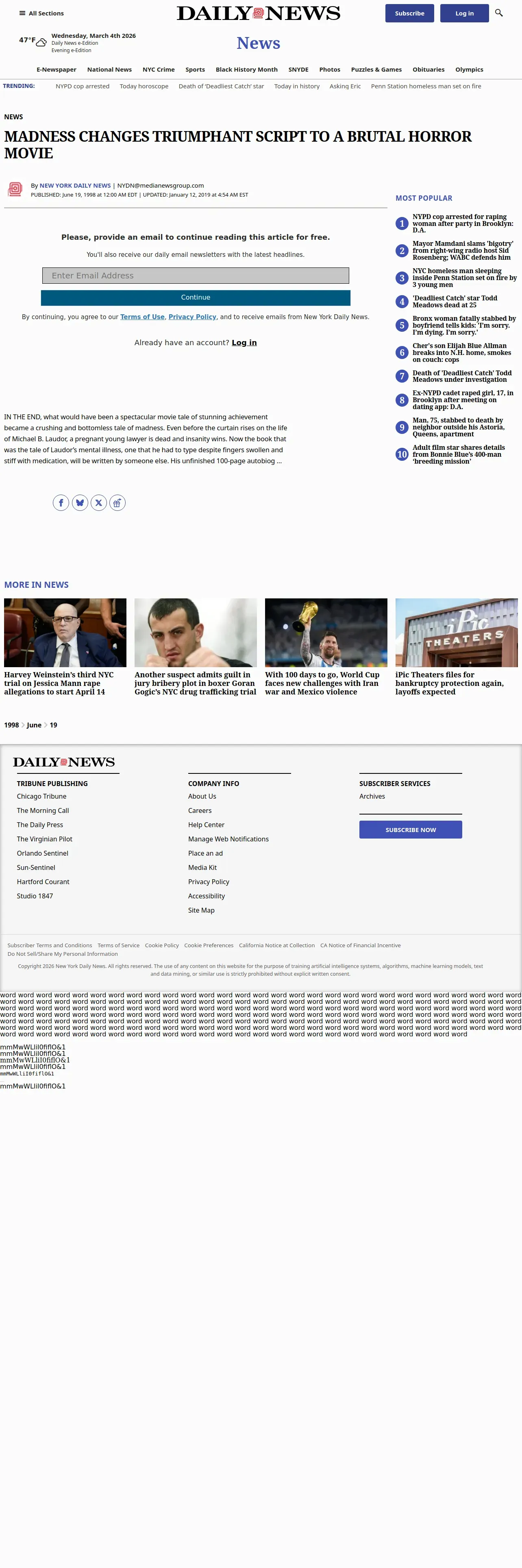 https://www.nydailynews.com:443/1998/06/19/madness-changes-triumphant-script-to-a-brutal-horror-movie/