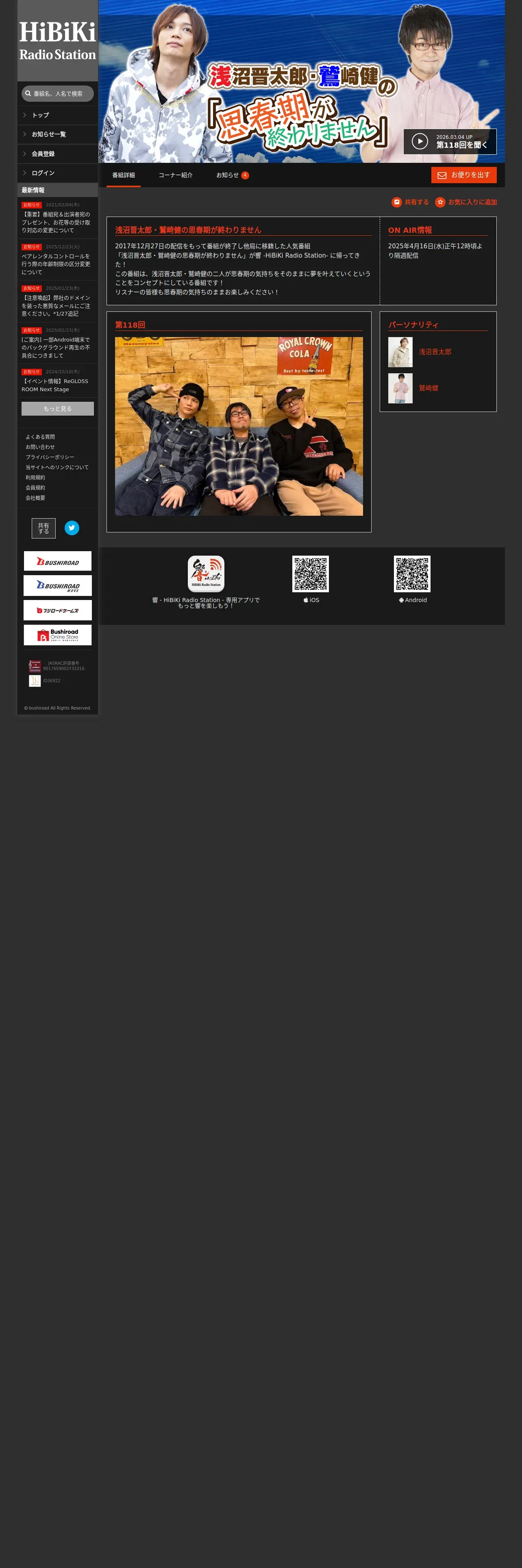 https://hibiki-radio.jp:443/description/shisyunki/detail