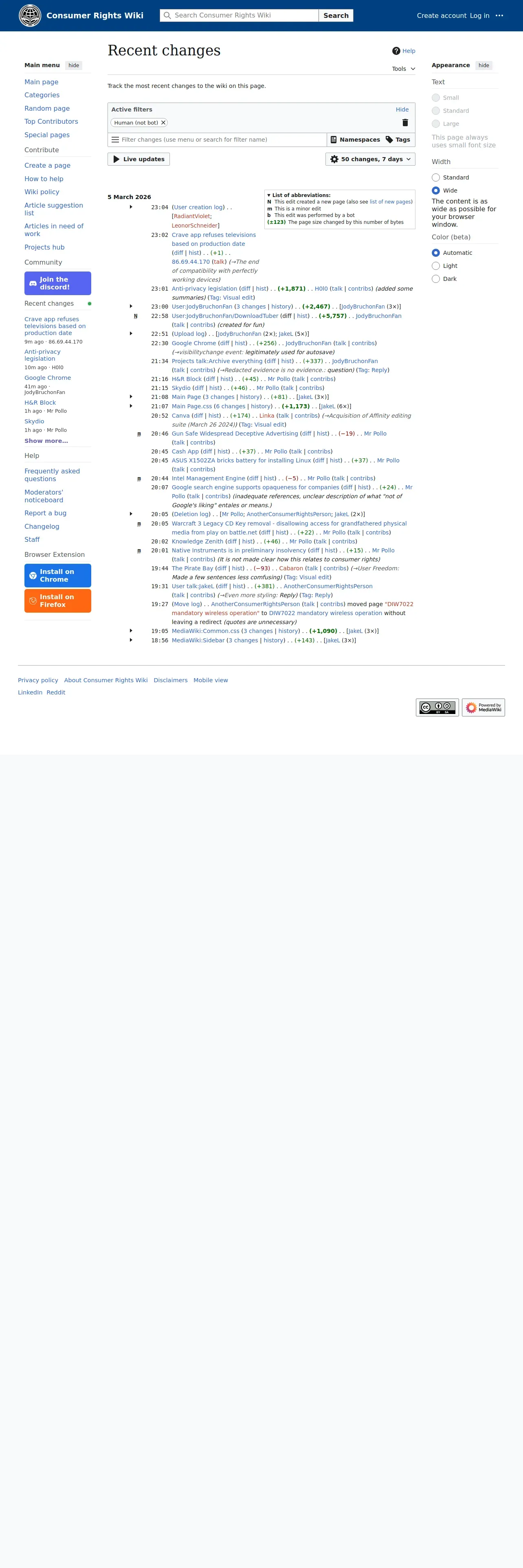 https://consumerrights.wiki:443/w/Special:RecentChanges