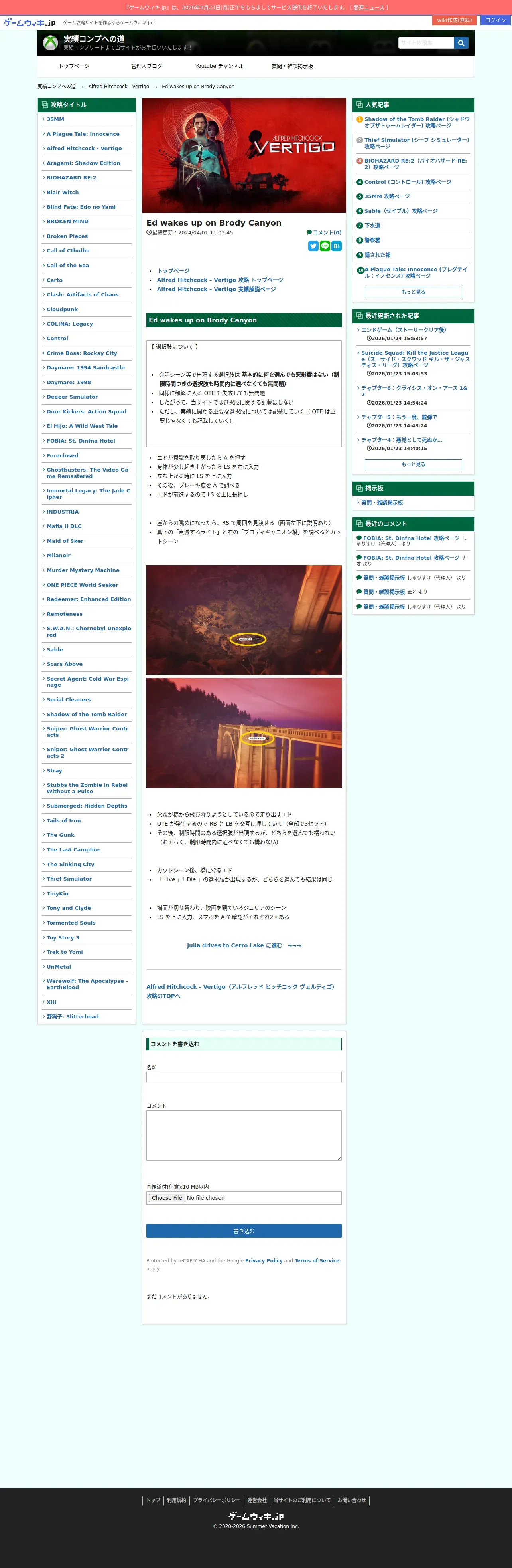 https://xboxguides.gamewiki.jp:443/Alfred-Hitchcock-Vertigo-Ed-Wakes-up-on-Brody-Canyon/