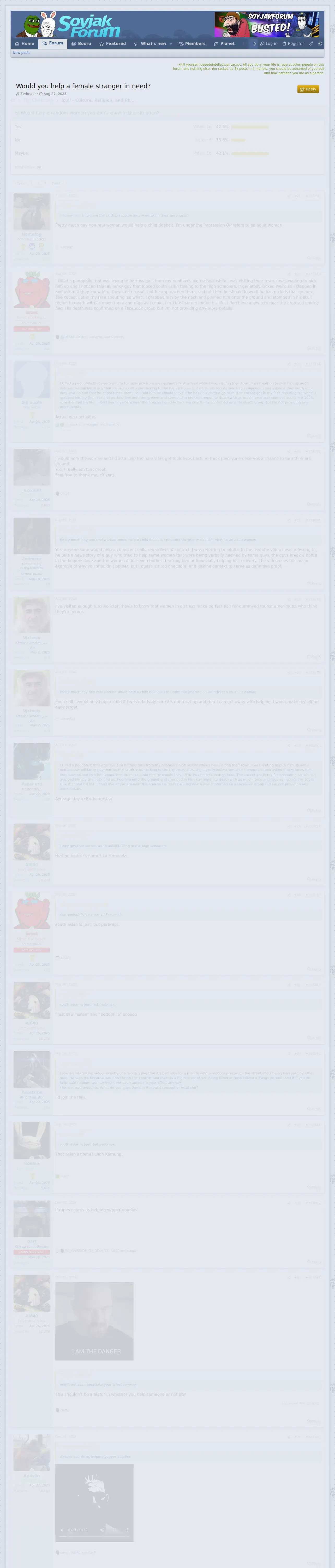 https://soyjak.forum:443/threads/would-you-help-a-female-stranger-in-need.4423/page-2