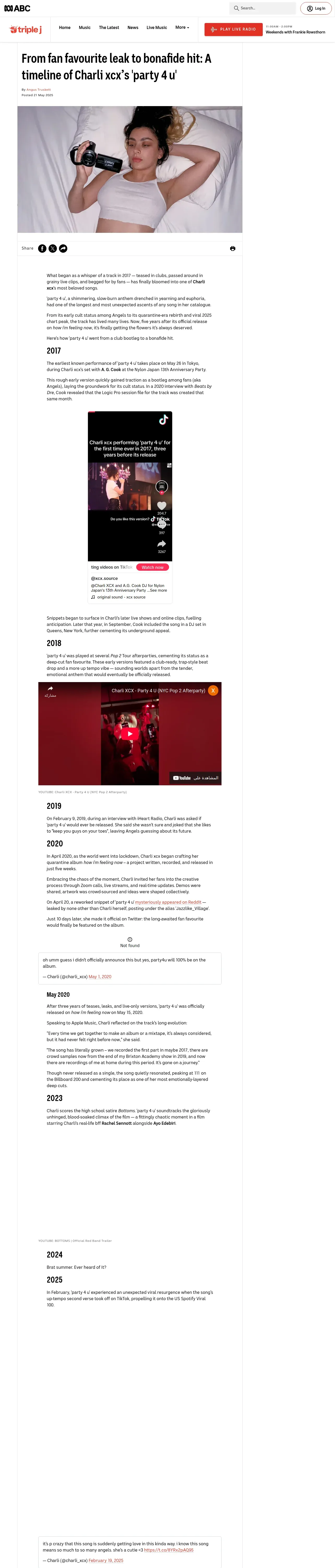 https://www.abc.net.au:443/triplej/news/charli-xcx-party-4-u-timeline/105318218