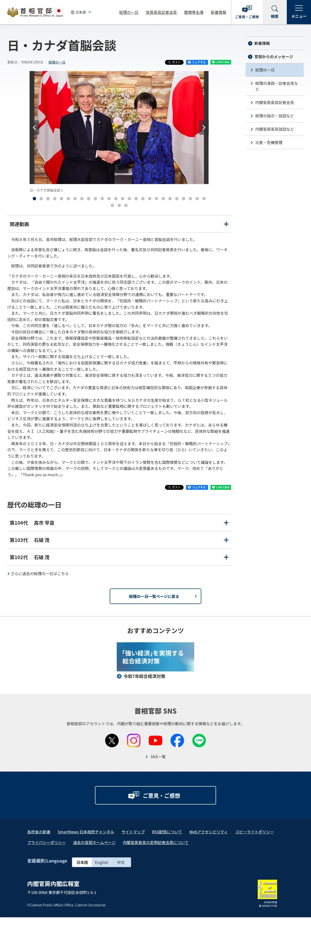 https://www.kantei.go.jp:443/jp/105/actions/202603/06canada.html