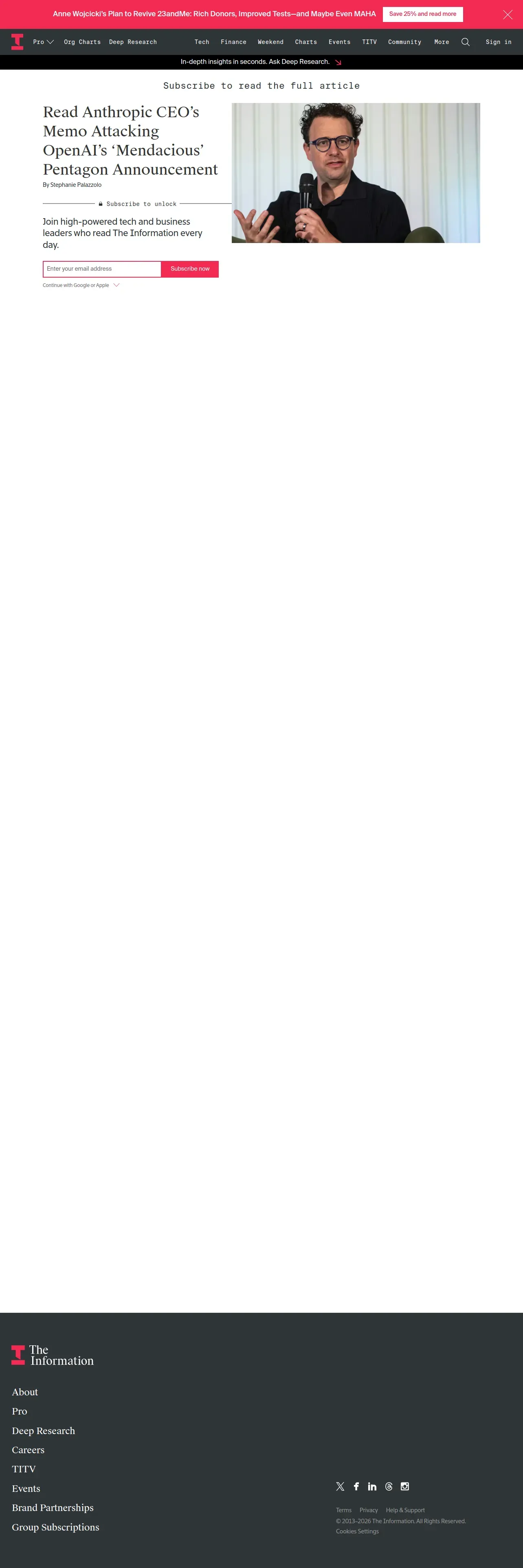 取得元URL: https://www.theinformation.com:443/articles/read-anthropic-ceos-memo-attacking-openais-mendacious-pentagon-announcement?utm_campaign=&utm_content=&utm_medium=organic_social&utm_source=bluesky,facebook,linkedin,threads,twitter