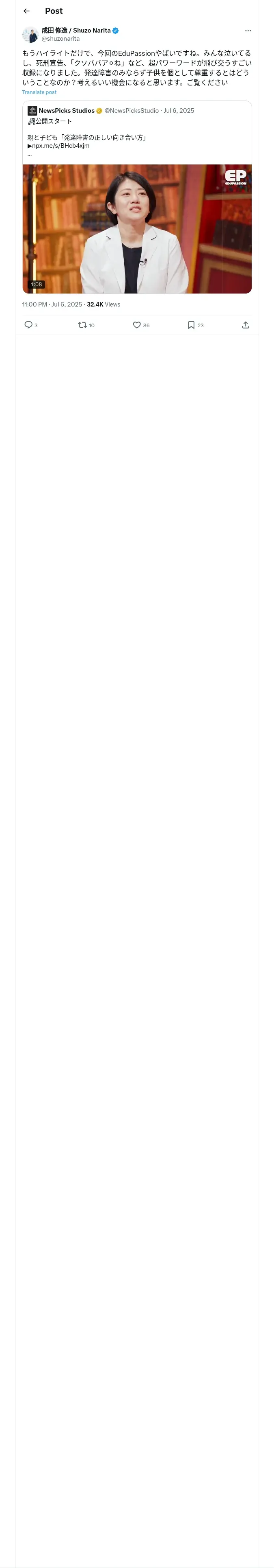 取得元URL: https://x.com:443/shuzonarita/status/1941859895495860715