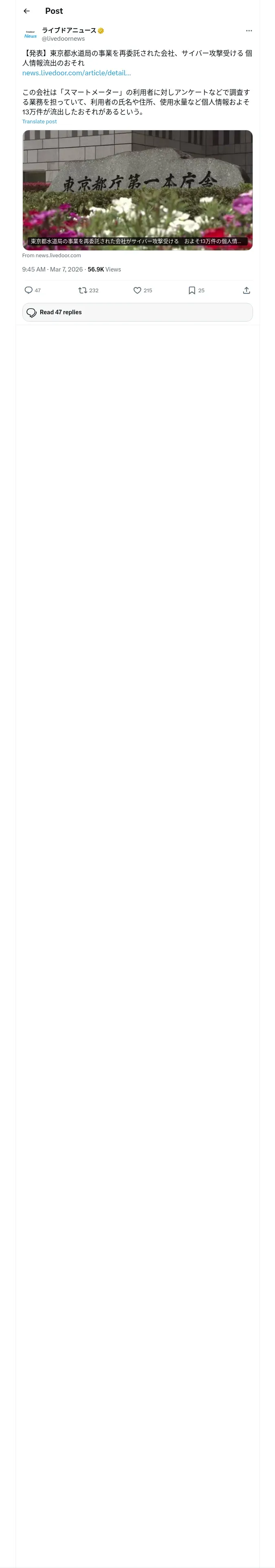 取得元URL: https://x.com:443/livedoornews/status/2030082250315059408