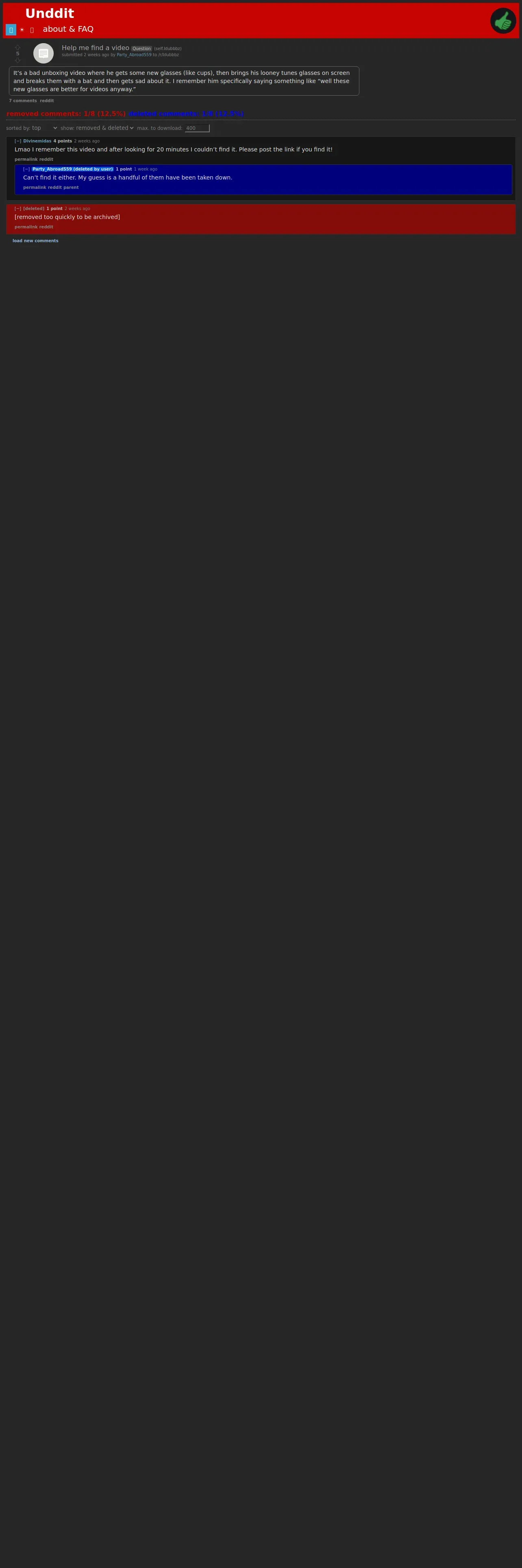 https://undelete.rdrama.net:443/r/Idubbbz/comments/1r9okf7/help_me_find_a_video/