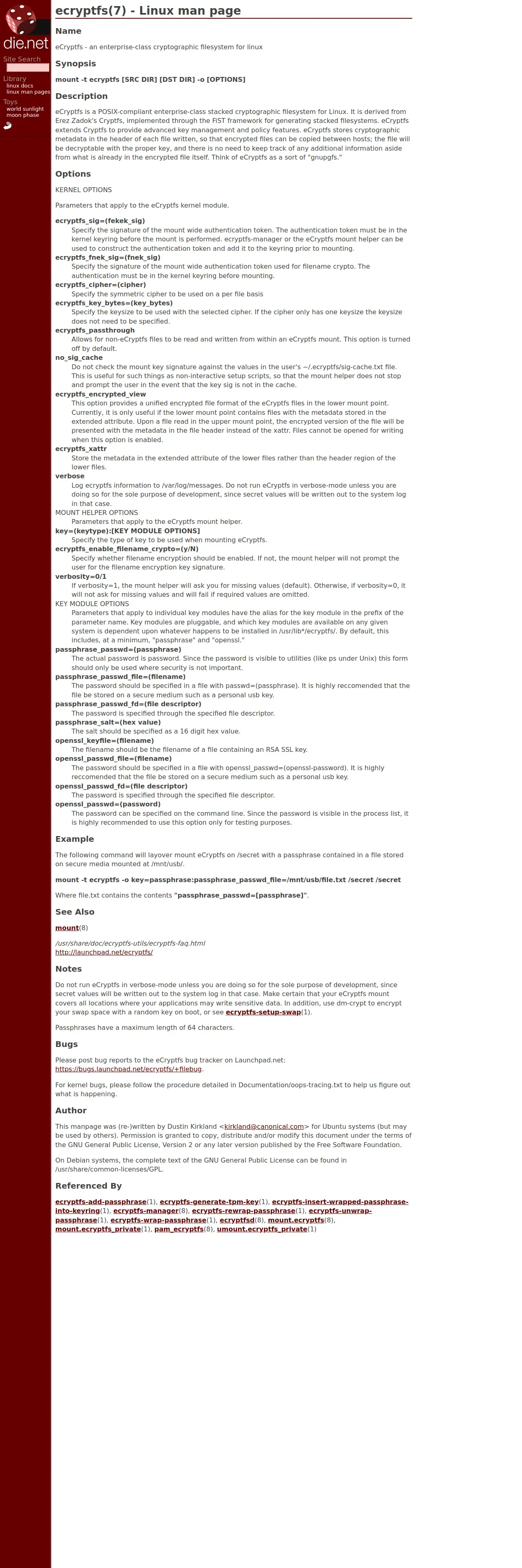 https://linux.die.net:443/man/7/ecryptfs