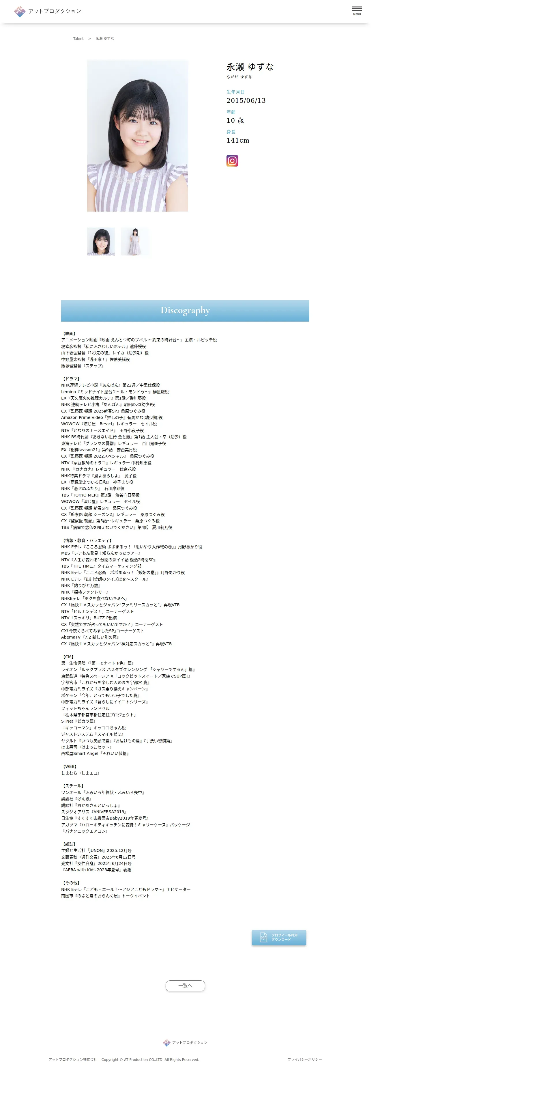 https://www.at-production.jp:443/talent/nagase-yuzuna/