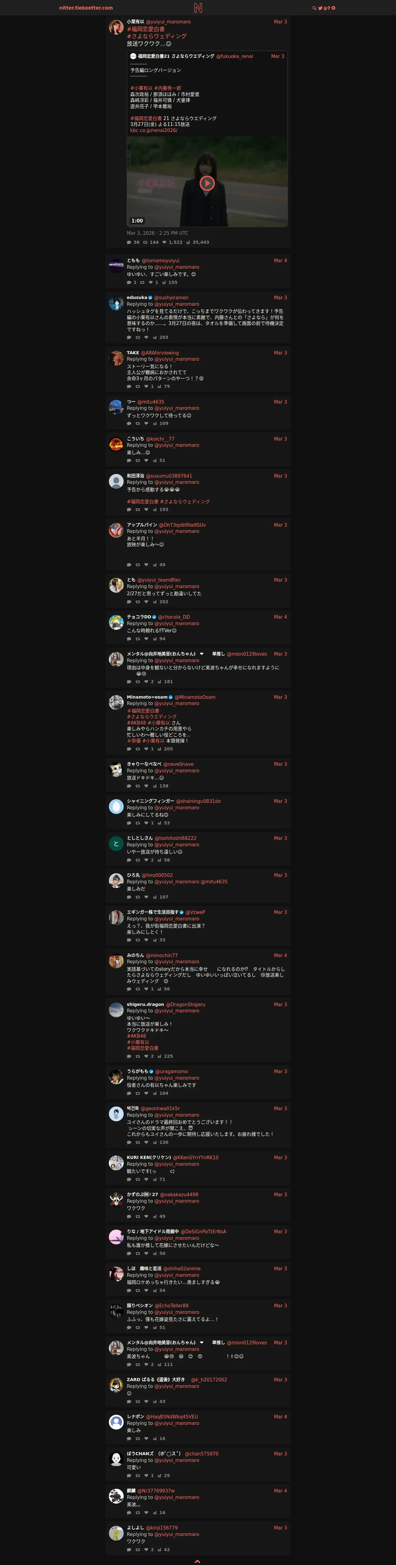取得元URL: https://nitter.tiekoetter.com:443/yuiyui_maromaro/status/2028839058710171909