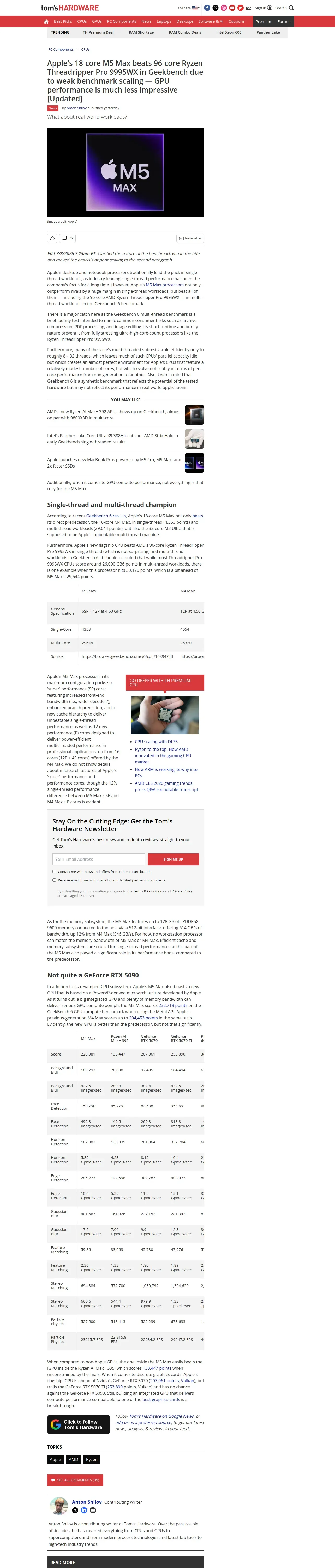 https://www.tomshardware.com:443/pc-components/cpus/apples-18-core-m5-max-destroys-96-core-ryzen-threadripper-pro-9995wx-in-geekbench-gpu-performance-is-much-less-impressive