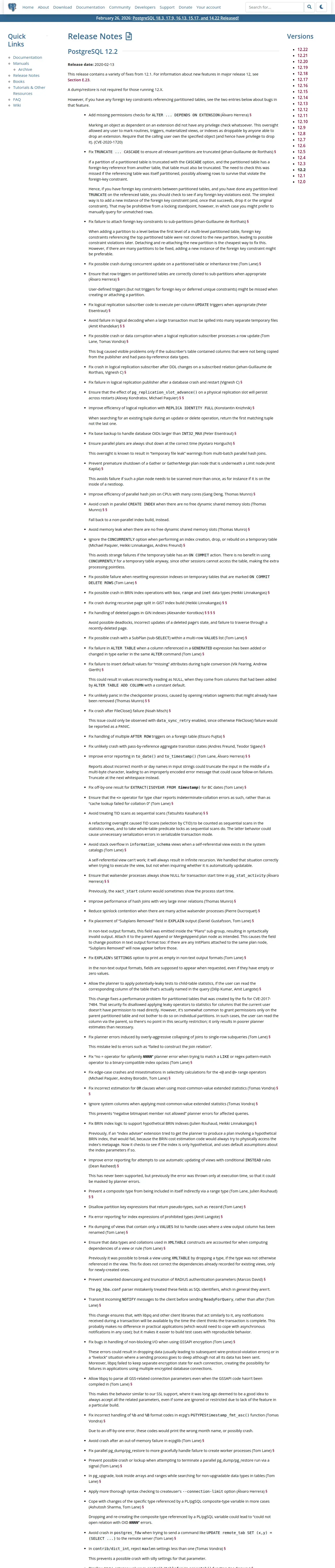 https://www.postgresql.org:443/docs/release/12.2/