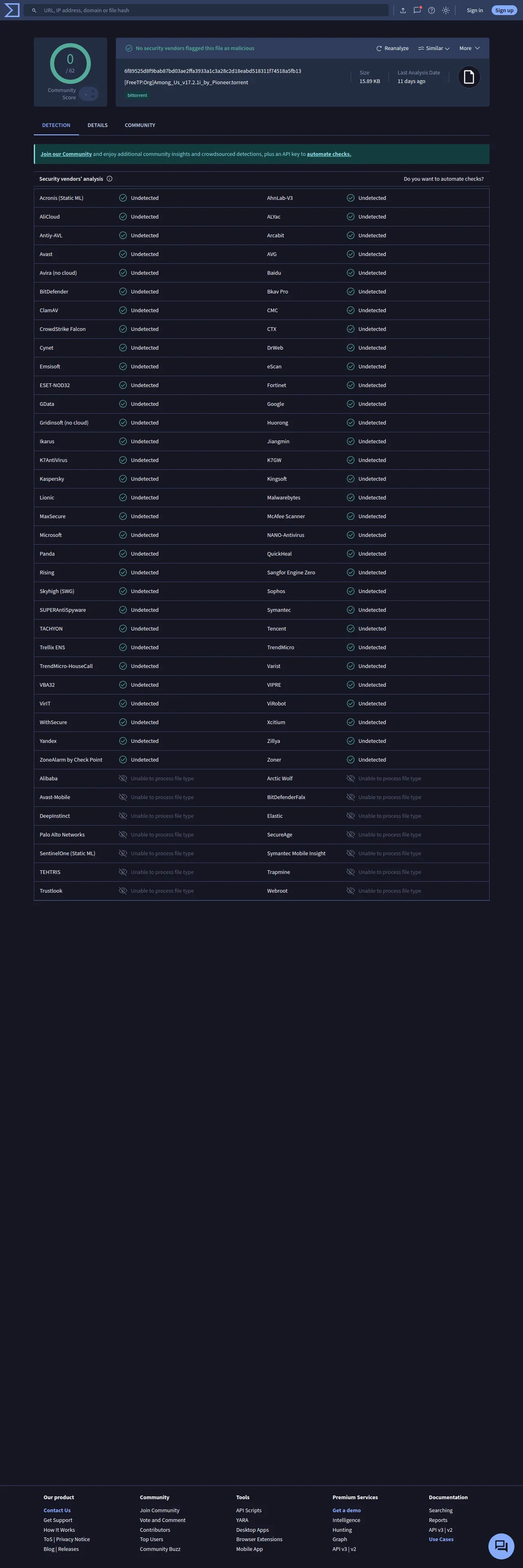 https://www.virustotal.com:443/gui/file/6f89525d8f9bab87bd03ae2ffa3933a1c3a28c2d18eabd518311f74518a5fb13
