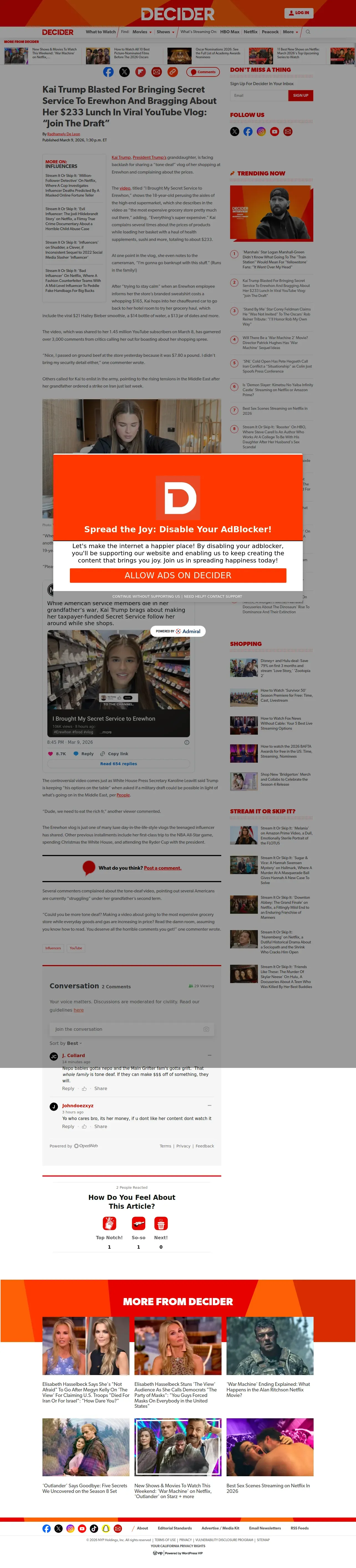 https://decider.com:443/2026/03/09/kai-trump-secret-service-erewhon-vlog/