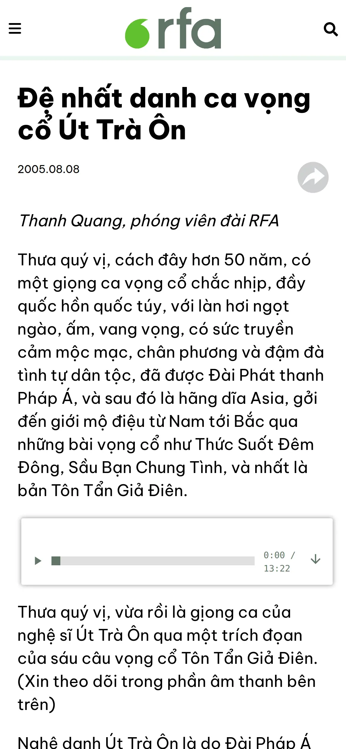 https://www.rfa.org:443/vietnamese/news/programs/TraditionalMusic/conhac_UtTraOnKingOfVongCo_TQuang-20050808.html