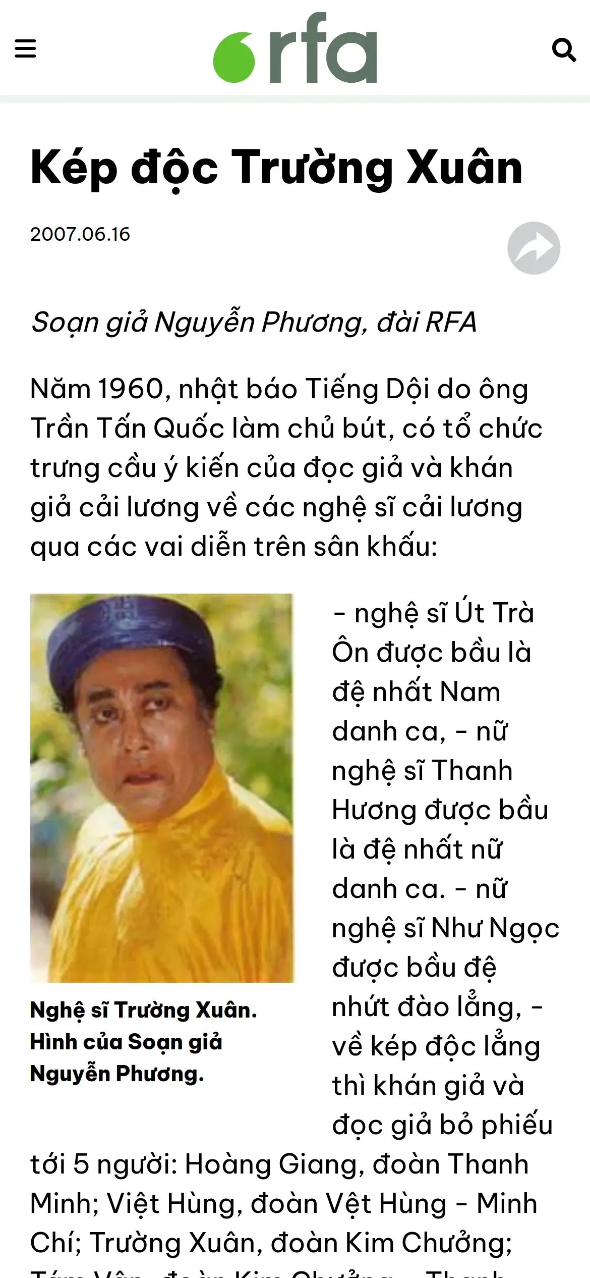 https://www.rfa.org:443/vietnamese/news/programs/TraditionalMusic/VnTraditionalMusicActorTruongXuan_NPhuong-20070616.html