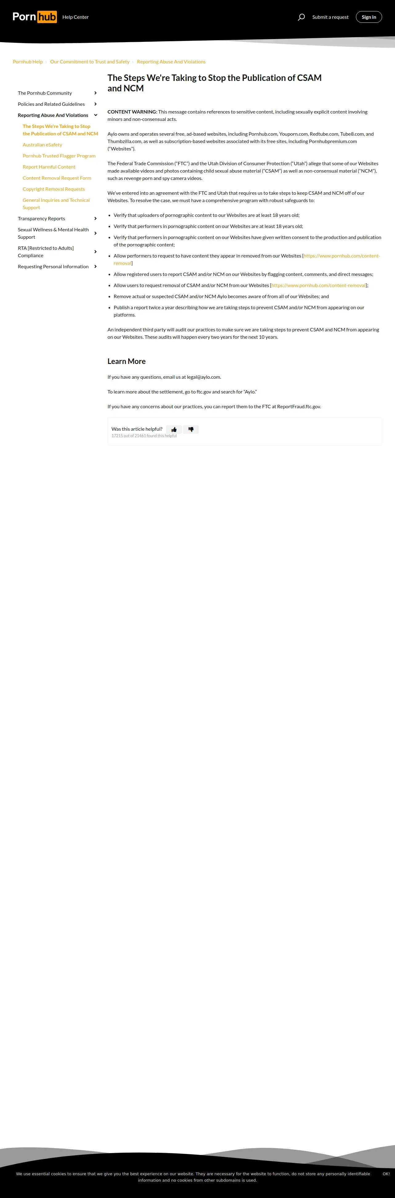 https://help.pornhub.com:443/hc/en-us/articles/44854458951571-The-Steps-We-re-Taking-to-Stop-the-Publication-of-CSAM-and-NCM