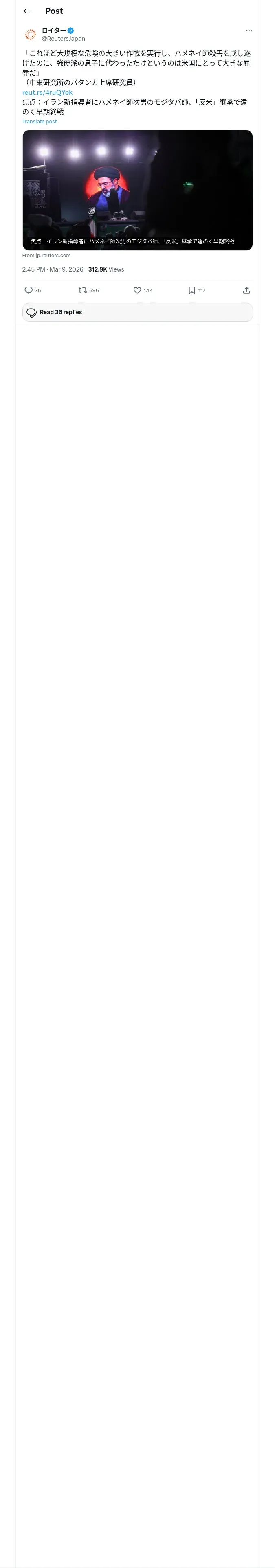 取得元URL: https://x.com:443/ReutersJapan/status/2030882523572584915