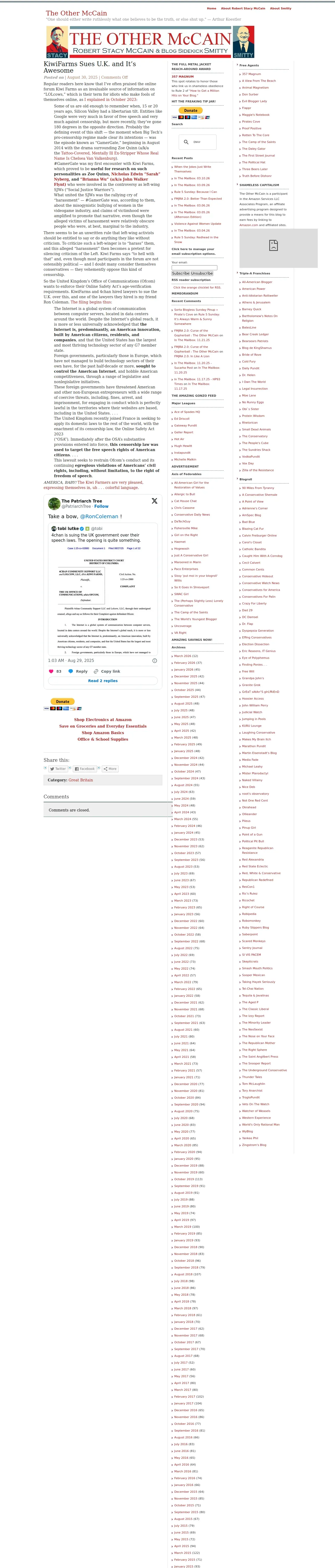 https://theothermccain.com:443/2025/08/30/kiwifarms-sues-u-k-and-its-awesome/