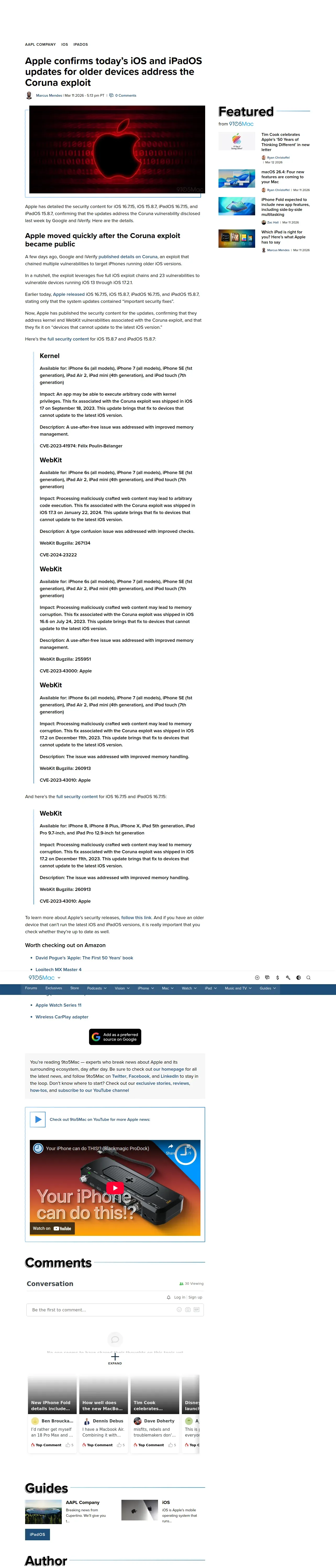 https://9to5mac.com:443/2026/03/11/apple-confirms-todays-ios-and-ipados-updates-for-older-devices-address-the-coruna-exploit/