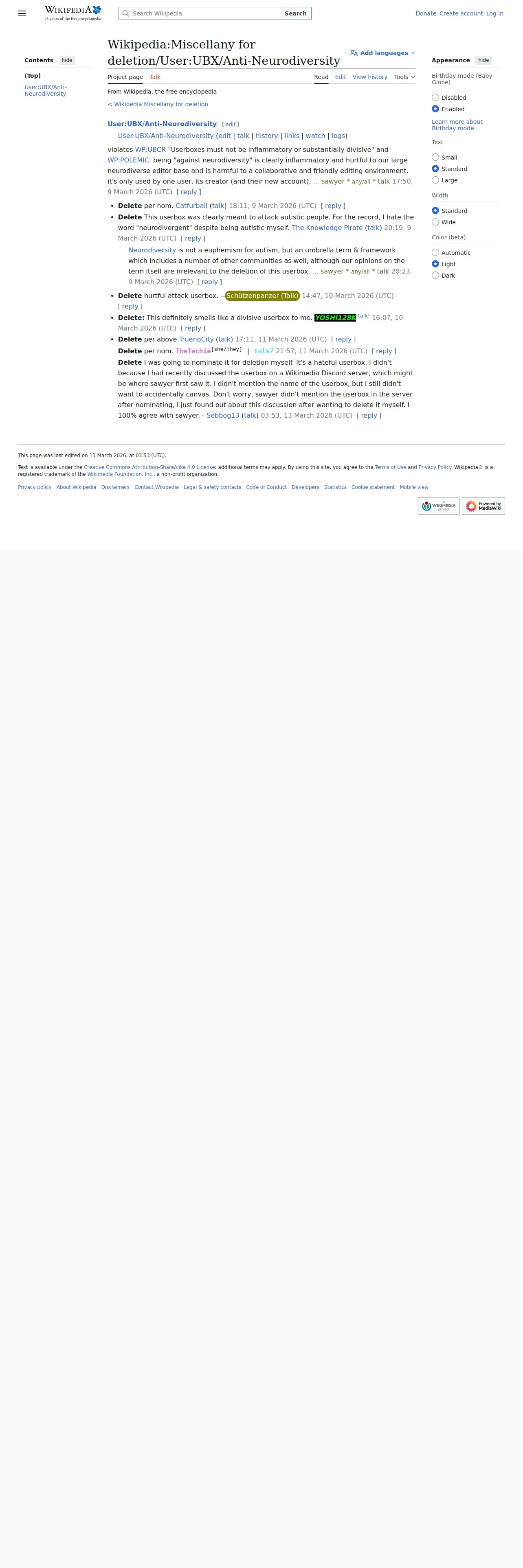 https://en.wikipedia.org:443/wiki/Wikipedia:Miscellany_for_deletion/User:UBX/Anti-Neurodiversity