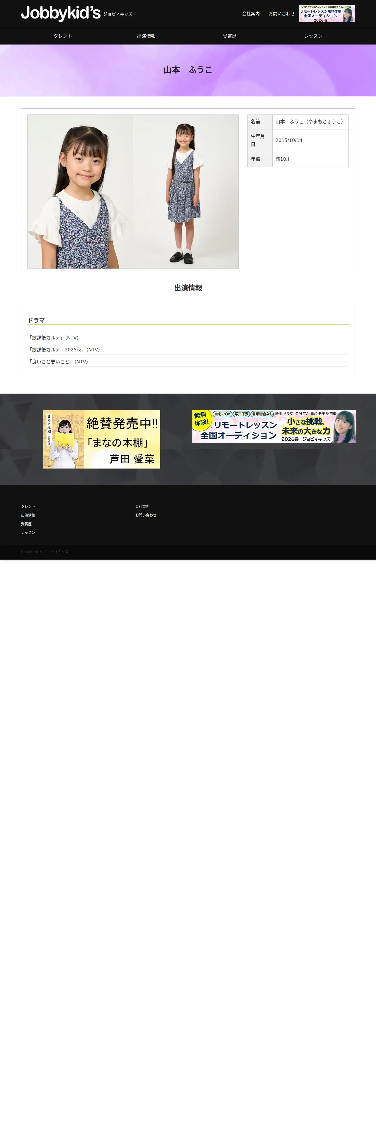 https://www.jobbykids.jp:443/talent/%e5%b1%b1%e6%9c%ac%e3%81%b5%e3%81%86%e3%81%93/