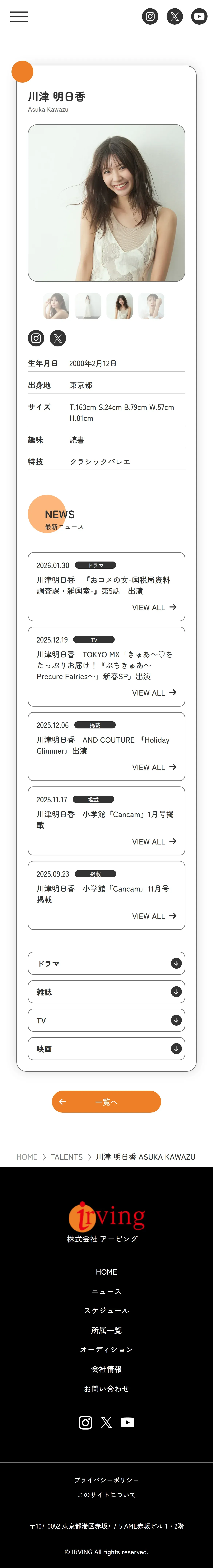 https://irving.co.jp:443/talents/asuka-kawazu/