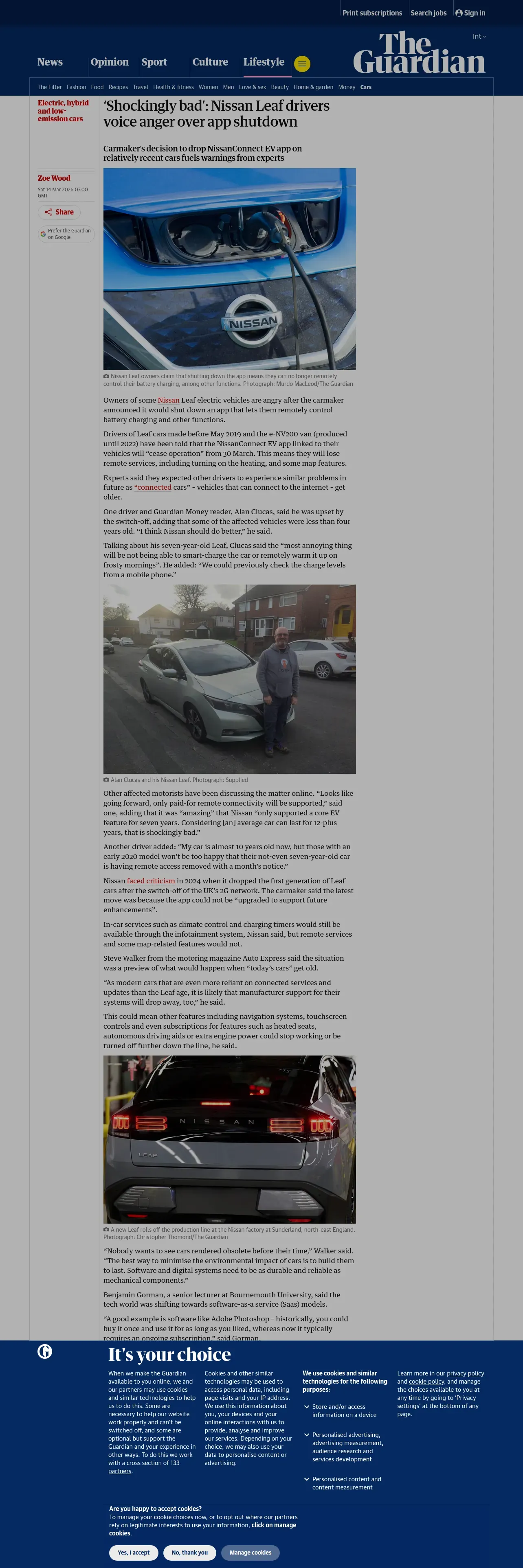 取得元URL: https://www.theguardian.com:443/environment/2026/mar/14/nissan-leaf-app-shutdown-nissanconnect-ev-app
