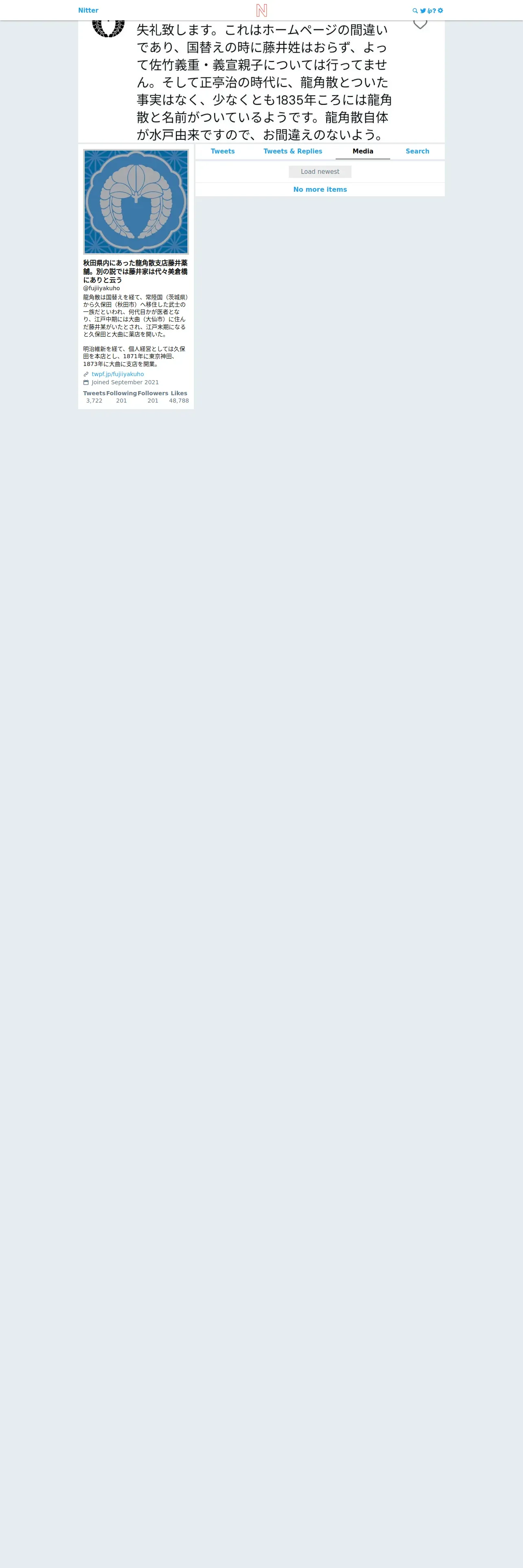 https://nitter.catsarch.com:443/fujiiyakuho/media?cursor=DAABCgABHDactg___sAKAAIVvs7S4VqAAAgAAwAAAAIAAA