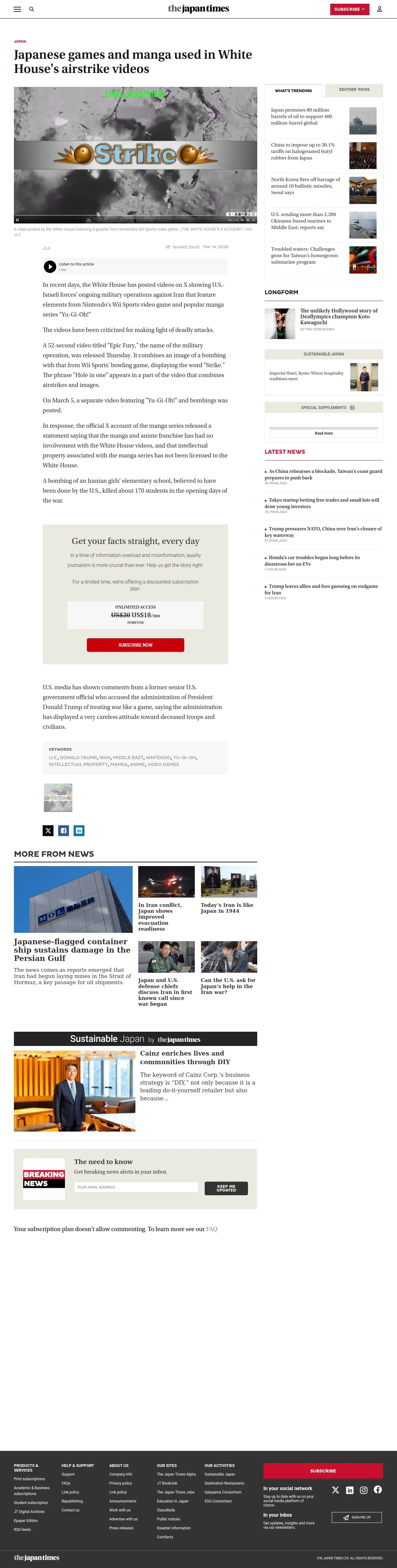 https://www.japantimes.co.jp:443/news/2026/03/14/japan/white-house-videos-japan-games/