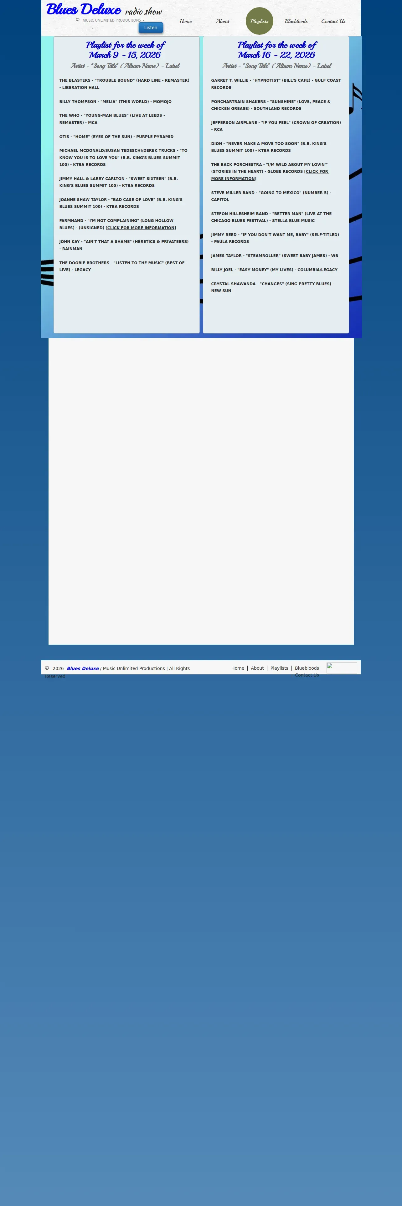 https://www.bluesdeluxe.com:443/playlists-1.html