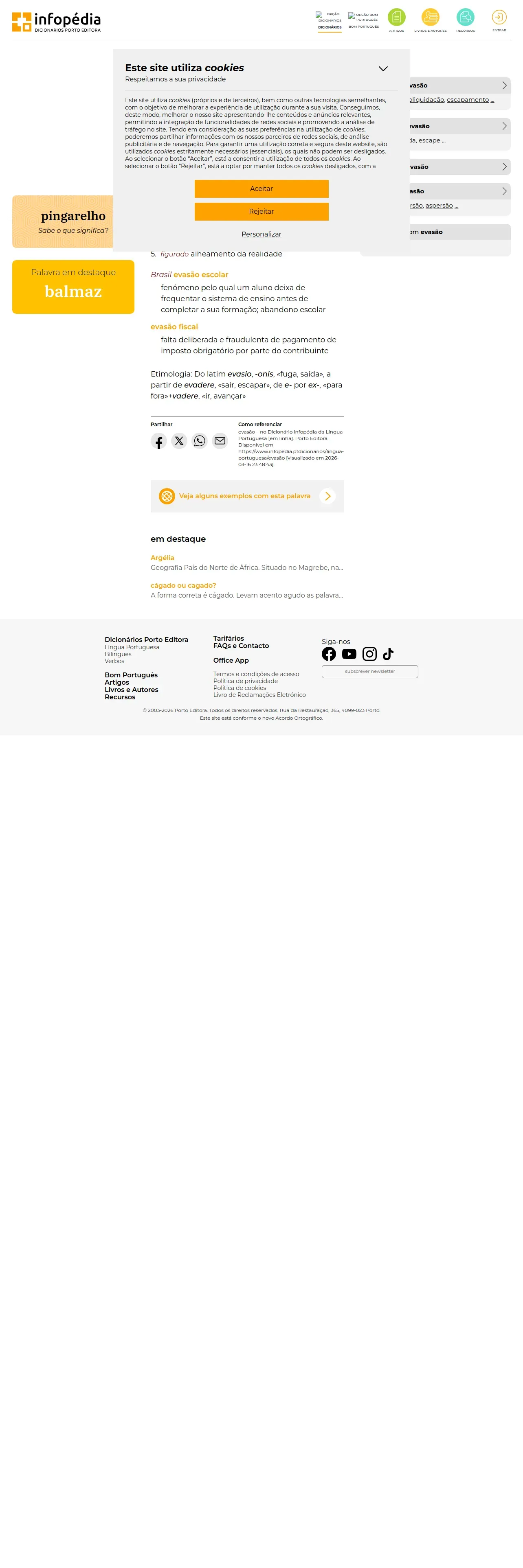 https://www.infopedia.pt:443/dicionarios/lingua-portuguesa/evas%C3%A3o