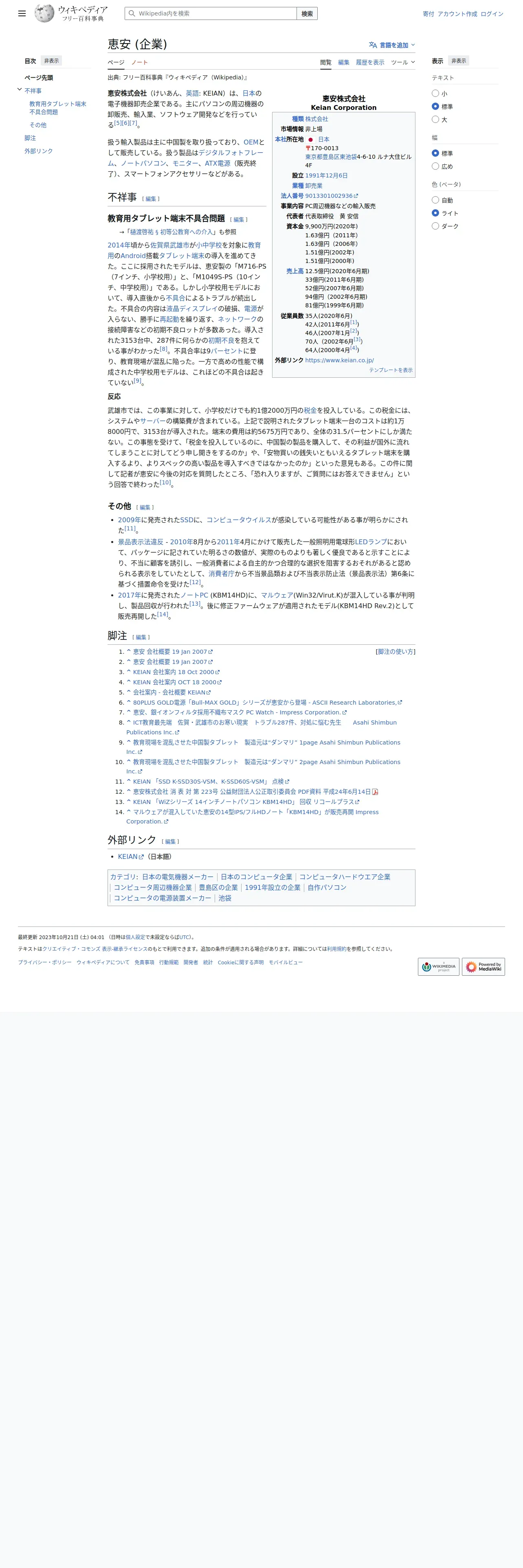 https://ja.wikipedia.org:443/wiki/%E6%81%B5%E5%AE%89_(%E4%BC%81%E6%A5%AD)