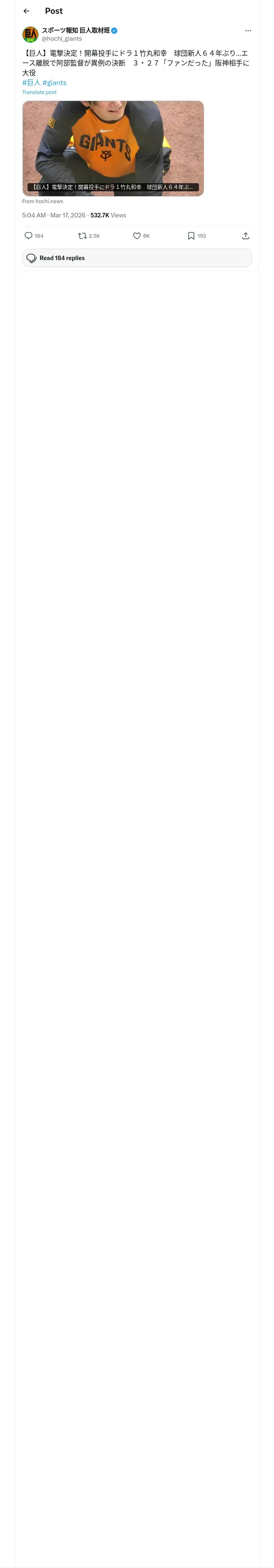 取得元URL: https://x.com:443/hochi_giants/status/2033635648947494940