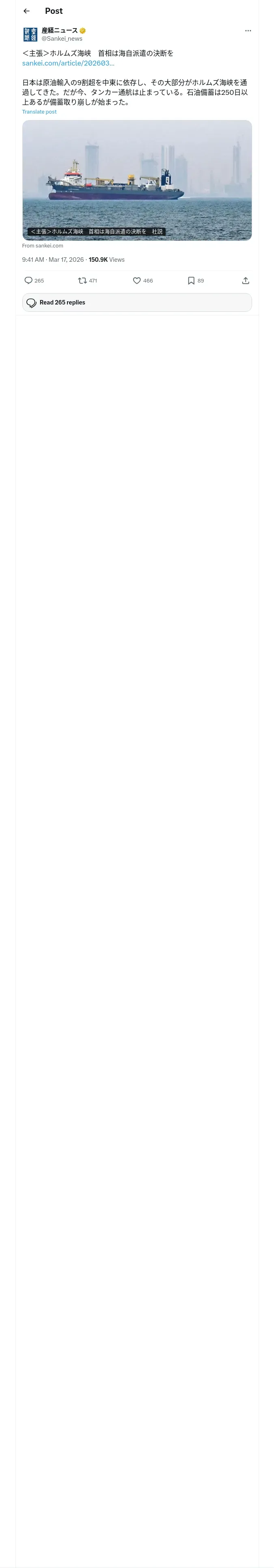 取得元URL: https://x.com:443/sankei_news/status/2033705234657313056