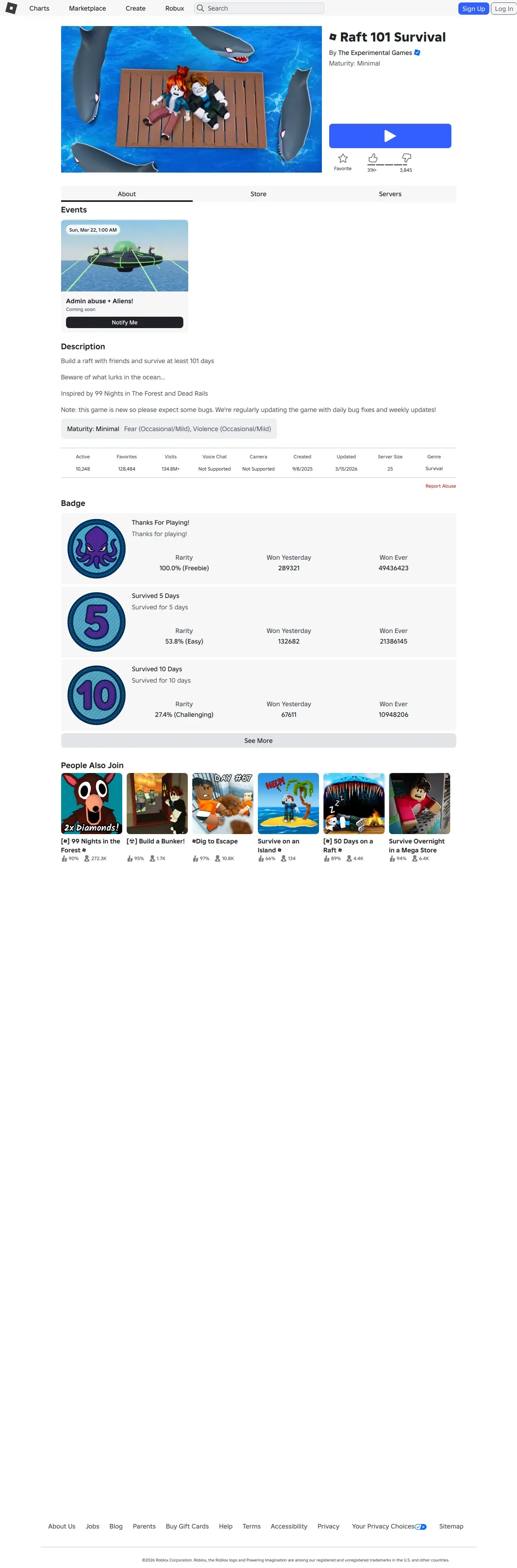 https://www.roblox.com:443/games/74256669508761/Raft-101-Survival