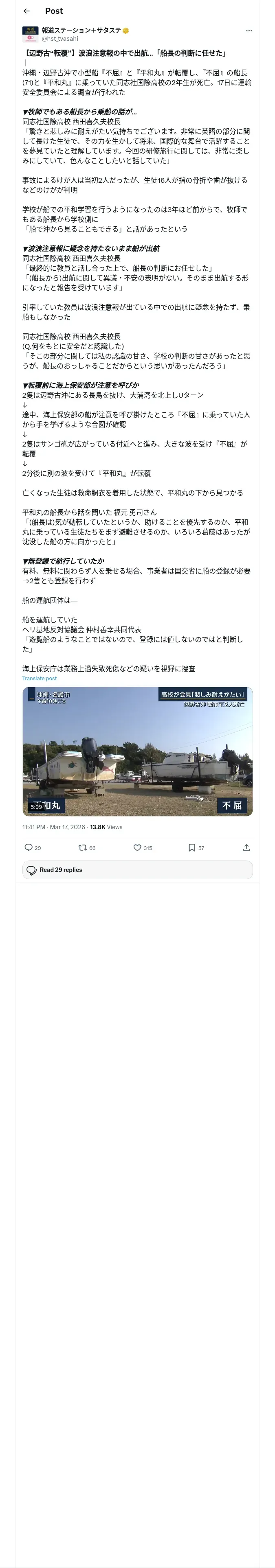 取得元URL: https://x.com:443/hst_tvasahi/status/2033916735485849840