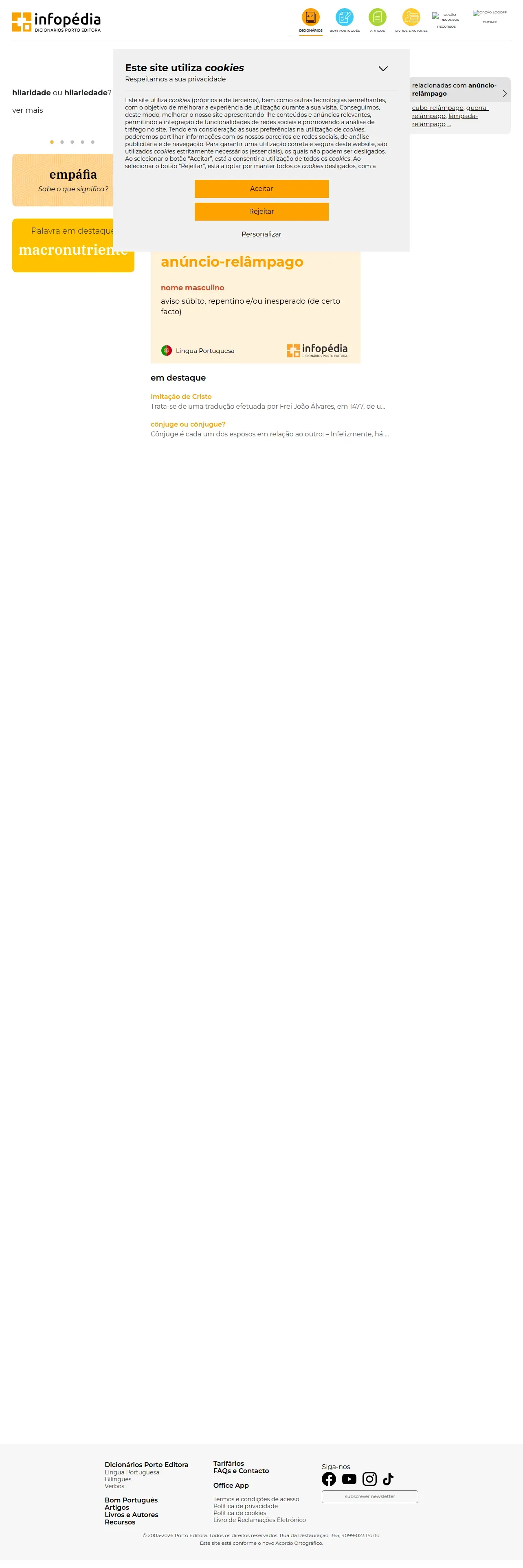 https://www.infopedia.pt:443/dicionarios/lingua-portuguesa/an%C3%BAncio-rel%C3%A2mpago