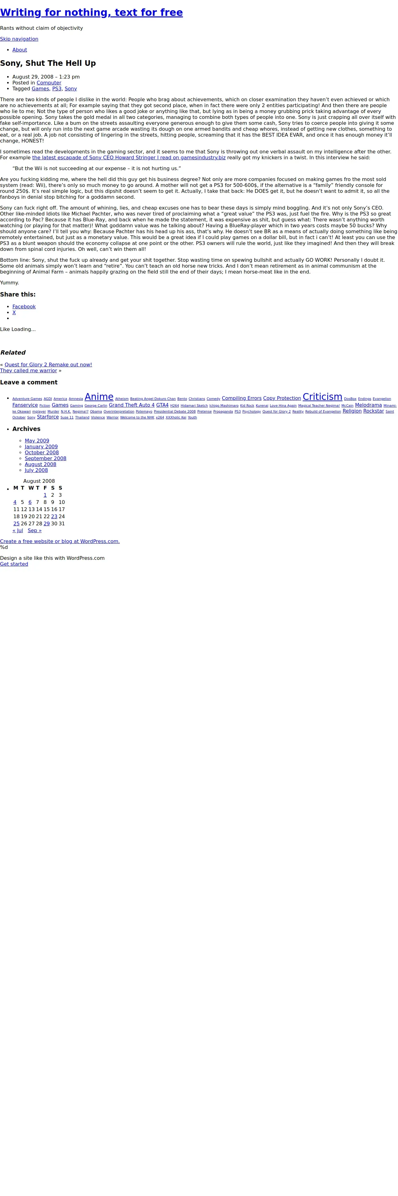 取得元URL: https://usernametakenistaken.wordpress.com:443/2008/08/29/sony-shut-the-hell-up/