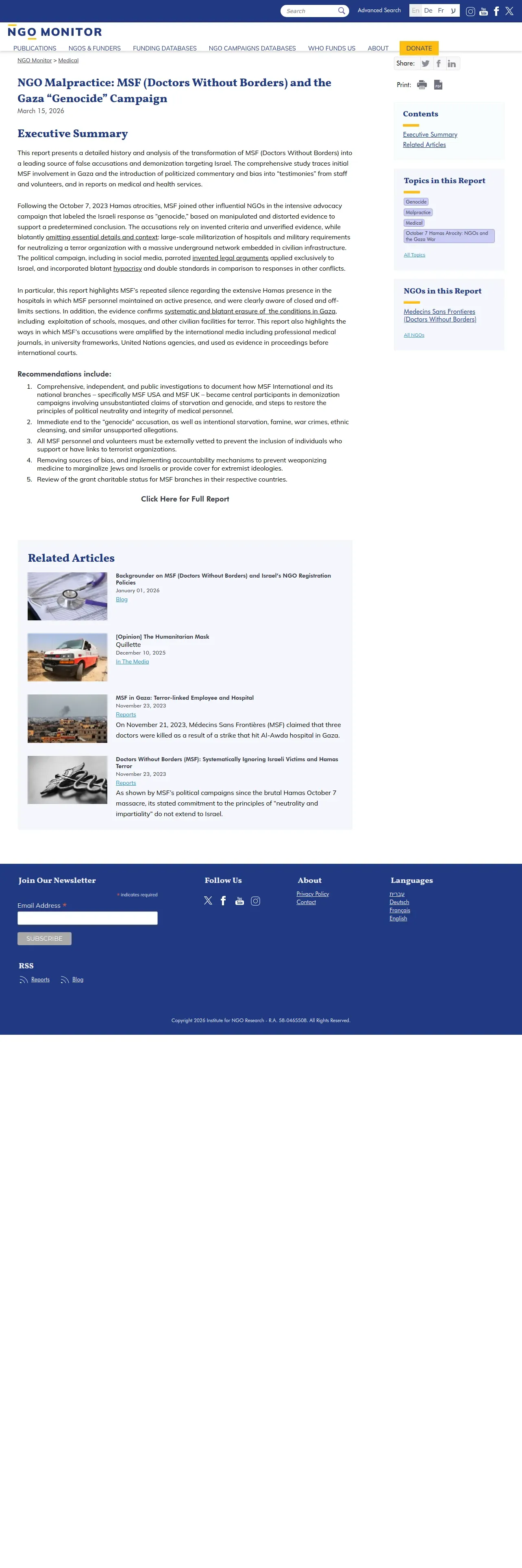 https://ngo-monitor.org:443/reports/ngo-malpractice-msf-doctors-without-borders-and-the-gaza-genocide-campaign/