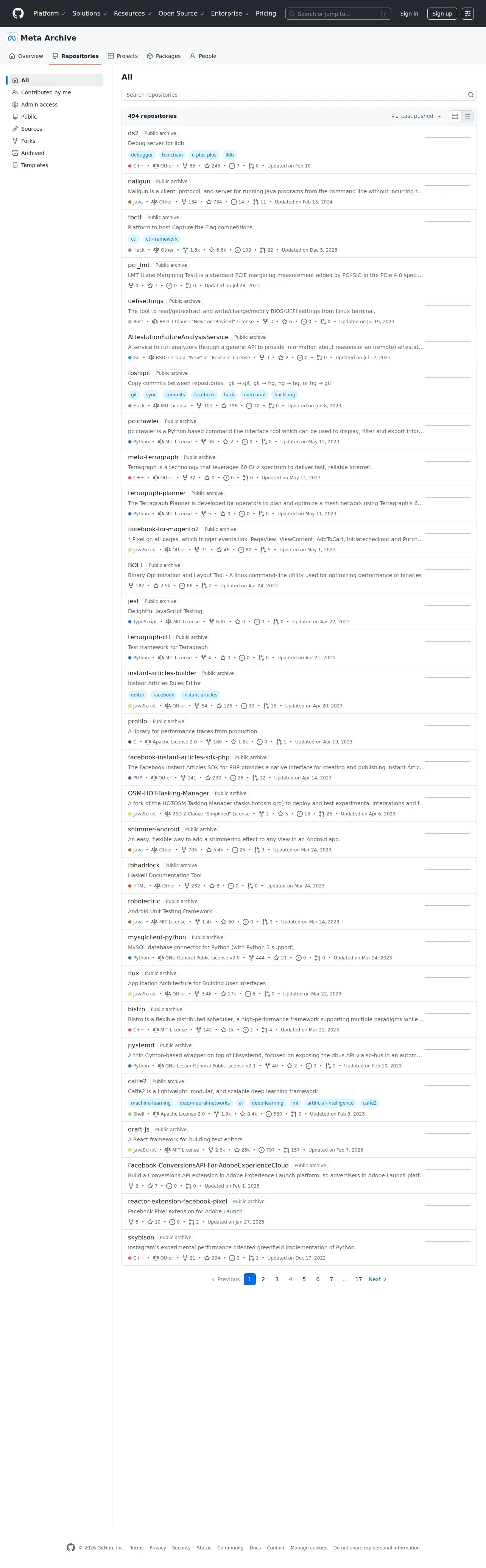 http://github.com/orgs/facebookarchive/repositories