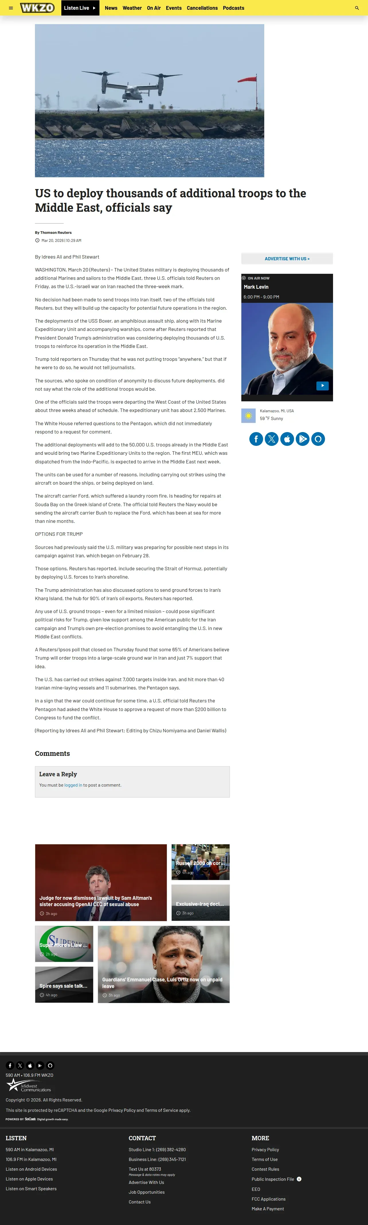 https://wkzo.com:443/2026/03/20/us-to-deploy-thousands-of-additional-troops-to-the-middle-east-officials-say/