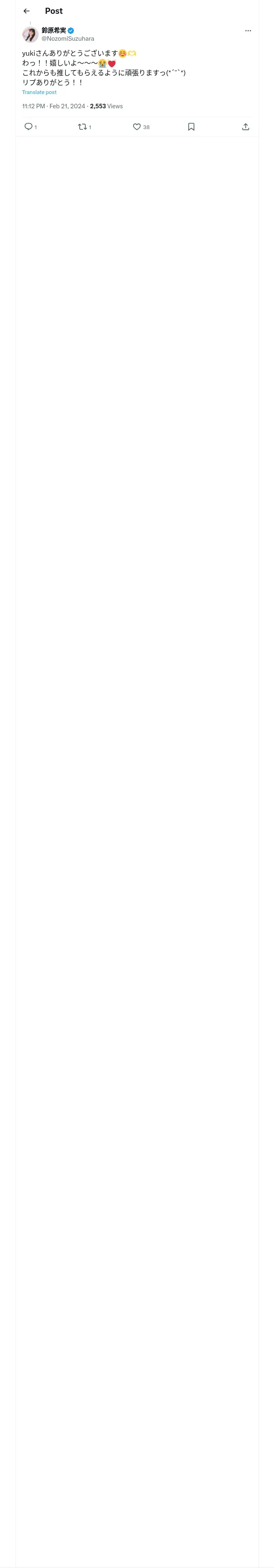 https://x.com:443/NozomiSuzuhara/status/1760306537342669249