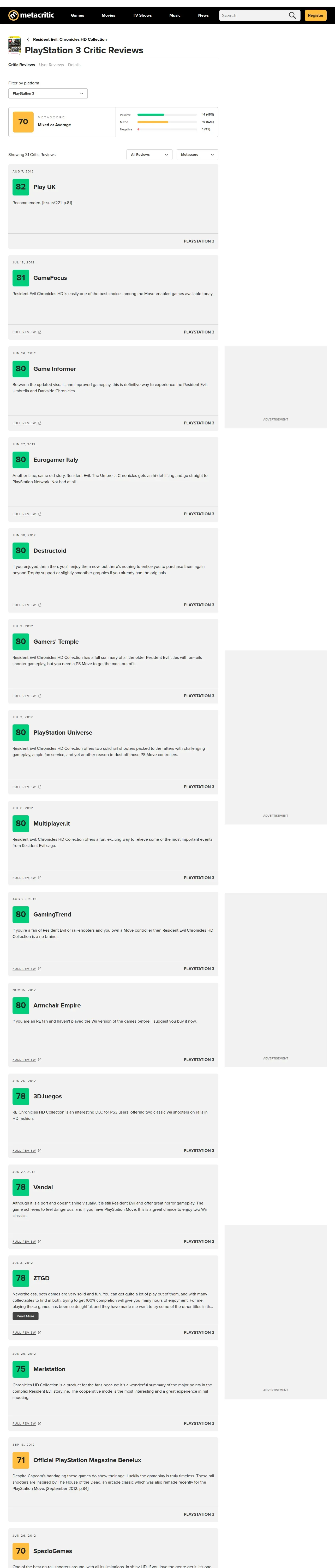 取得元URL: https://www.metacritic.com:443/game/resident-evil-chronicles-hd-collection/critic-reviews/?platform=playstation-3