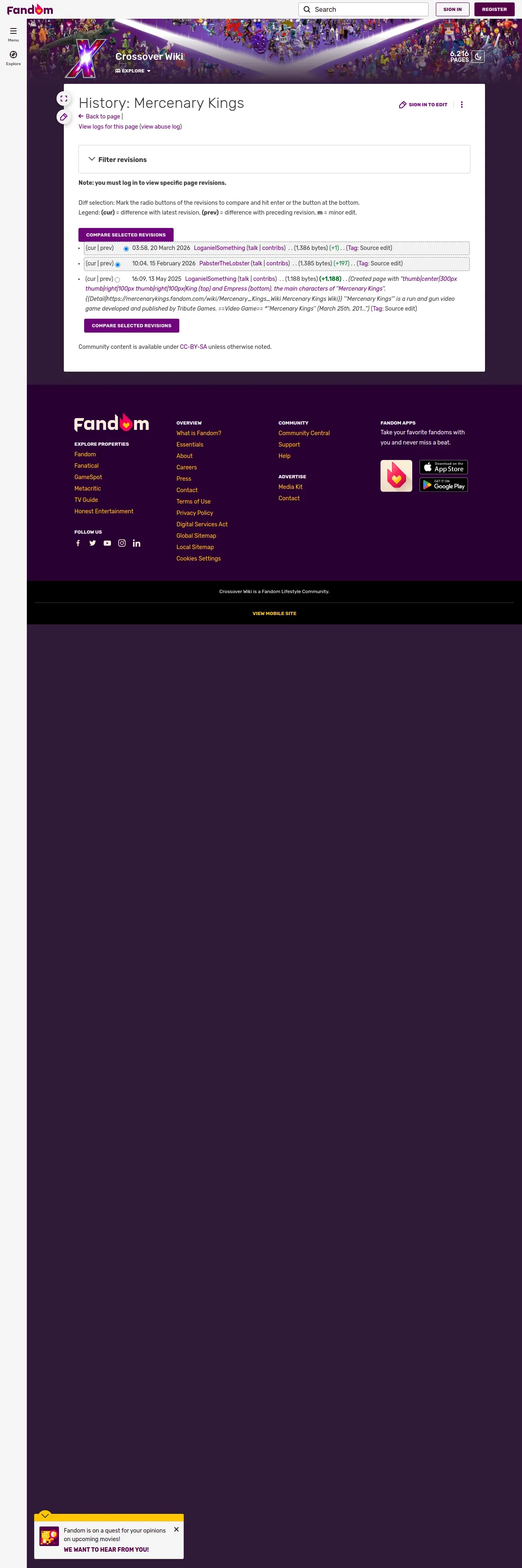 https://fictionalcrossover.fandom.com:443/wiki/Mercenary_Kings?action=history