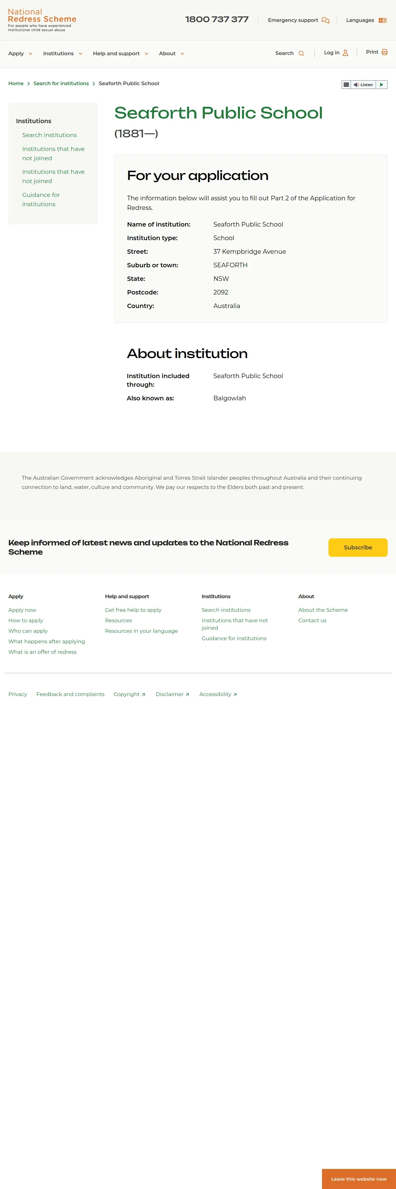 https://www.nationalredress.gov.au:443/institutions/seaforth-public-school