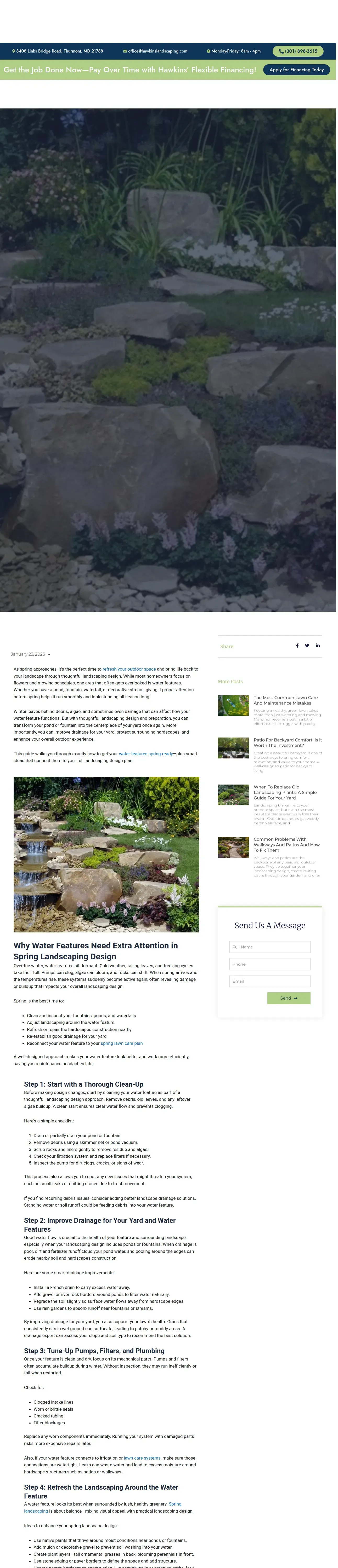 https://hawkinslandscaping.com:443/landscaping-design-10-smart-steps-for-spring-water-features/
